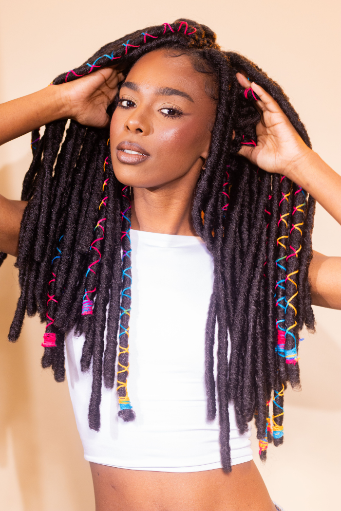 O Bae Locs no método Crochet Braids traz dreads com visual natural e toque leve, perfeitos para quem busca estilo, atitude e praticidade. Feito com fibra sintética, o cabelo tem excelente durabilidade e caimento suave. Seus fios apresentam uma textura mais grossa e encorpada, garantindo volume na medida certa e um visual autêntico. Alguns fios são envoltos por linhas coloridas, adicionando um toque divertido e criativo! Ideal para quem quer um look moderno, descontraído e cheio de personalidade, o Bae Locs traduz liberdade e expressão em cada fio.