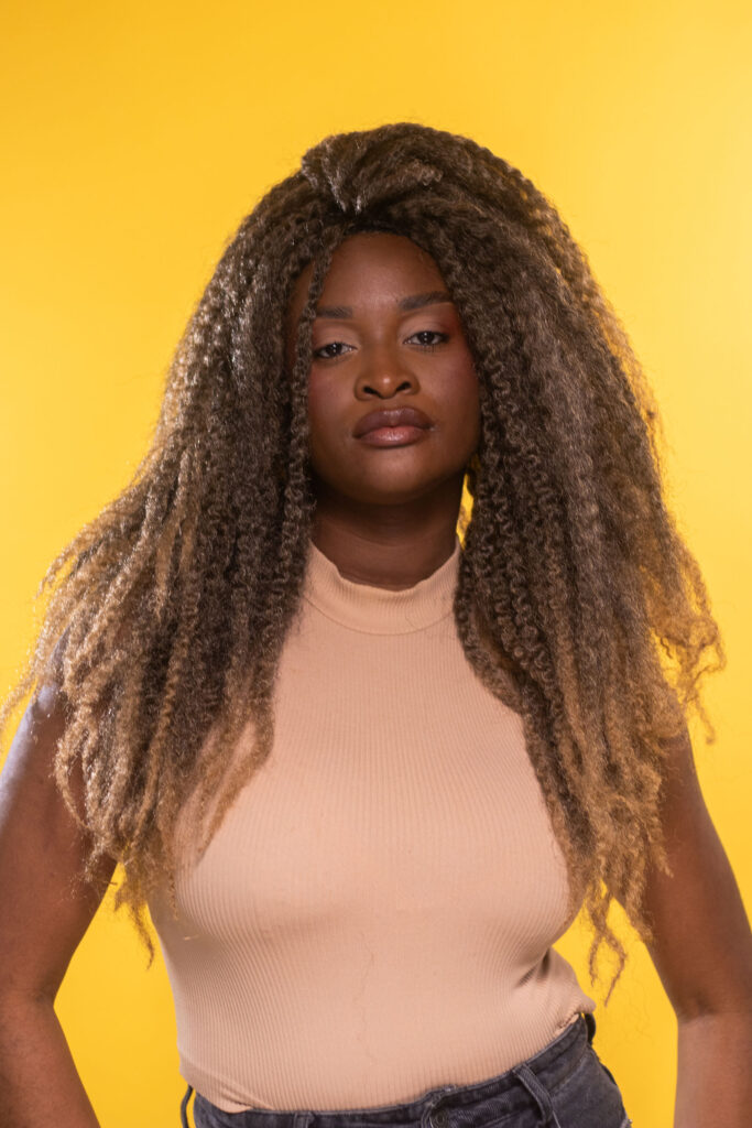 A wig Bela Twist apresenta um estilo volumoso e texturizado, remetendo a um cabelo afro com cachos soltos e um efeito natural. Sua fibra sintética de alta qualidade tem o toque confortável e ótima durabilidade. O comprimento é longo, com camadas que ajudam a distribuir o volume de maneira equilibrada. A raiz é bem distribuída para dar um aspecto natural, e o volume do topo adiciona dimensão ao penteado. Essa wig é ideal para quem deseja um cabelo cheio de presença, com um toque moderno e natural ao mesmo tempo.