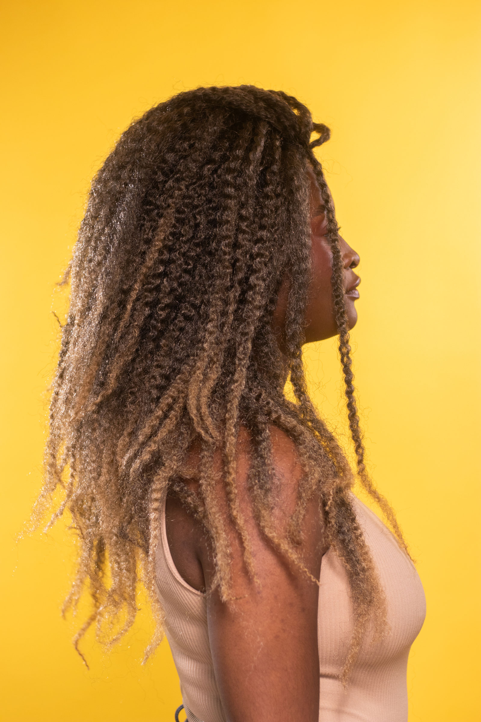 A wig Bela Twist apresenta um estilo volumoso e texturizado, remetendo a um cabelo afro com cachos soltos e um efeito natural. Sua fibra sintética de alta qualidade tem o toque confortável e ótima durabilidade. O comprimento é longo, com camadas que ajudam a distribuir o volume de maneira equilibrada. A raiz é bem distribuída para dar um aspecto natural, e o volume do topo adiciona dimensão ao penteado. Essa wig é ideal para quem deseja um cabelo cheio de presença, com um toque moderno e natural ao mesmo tempo.