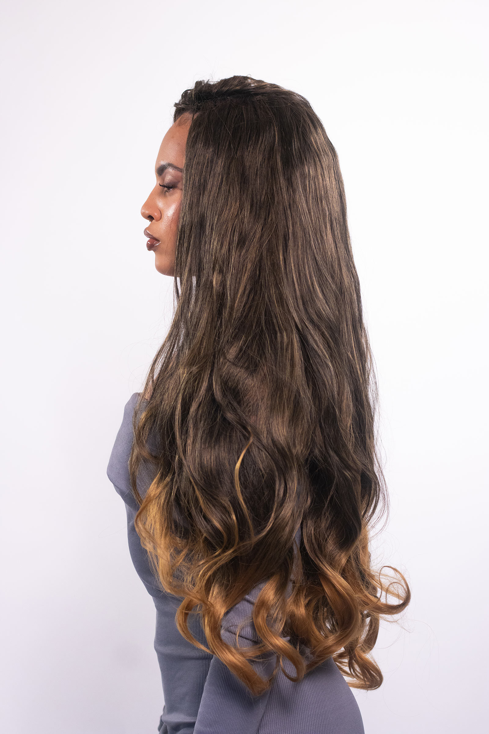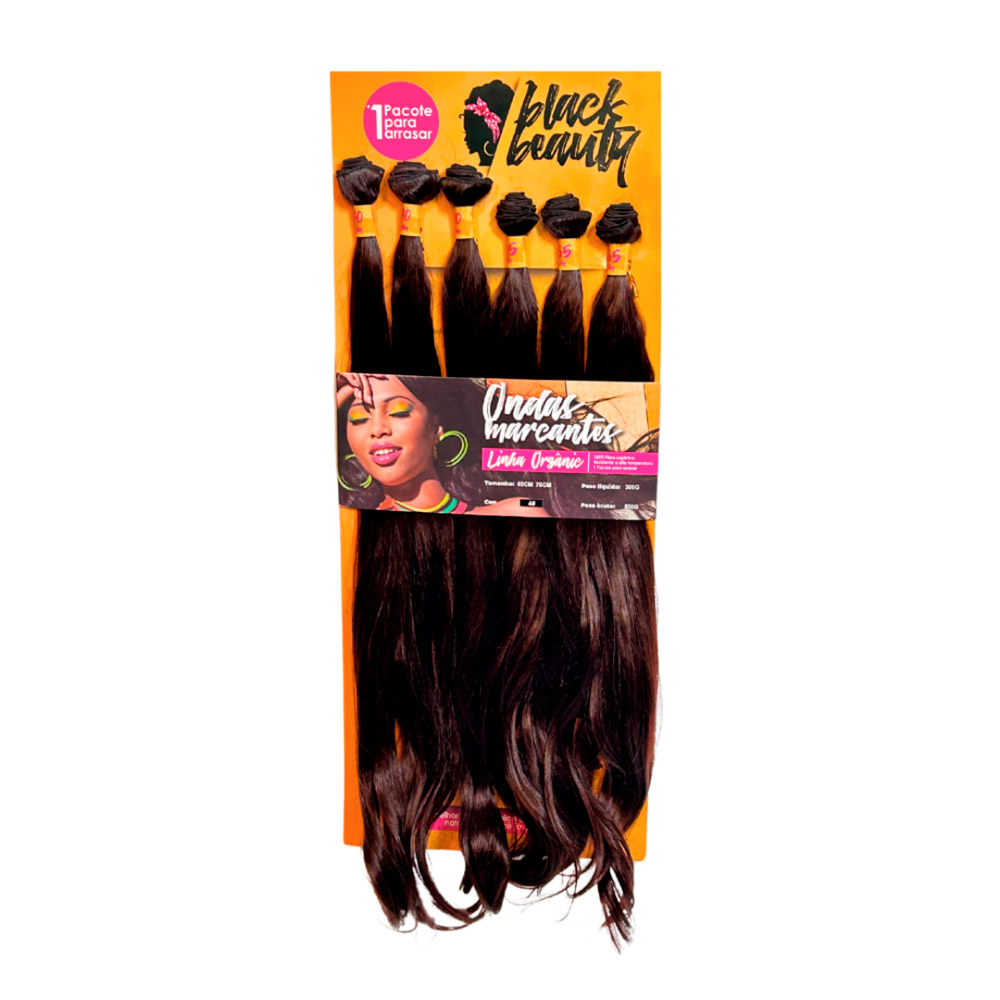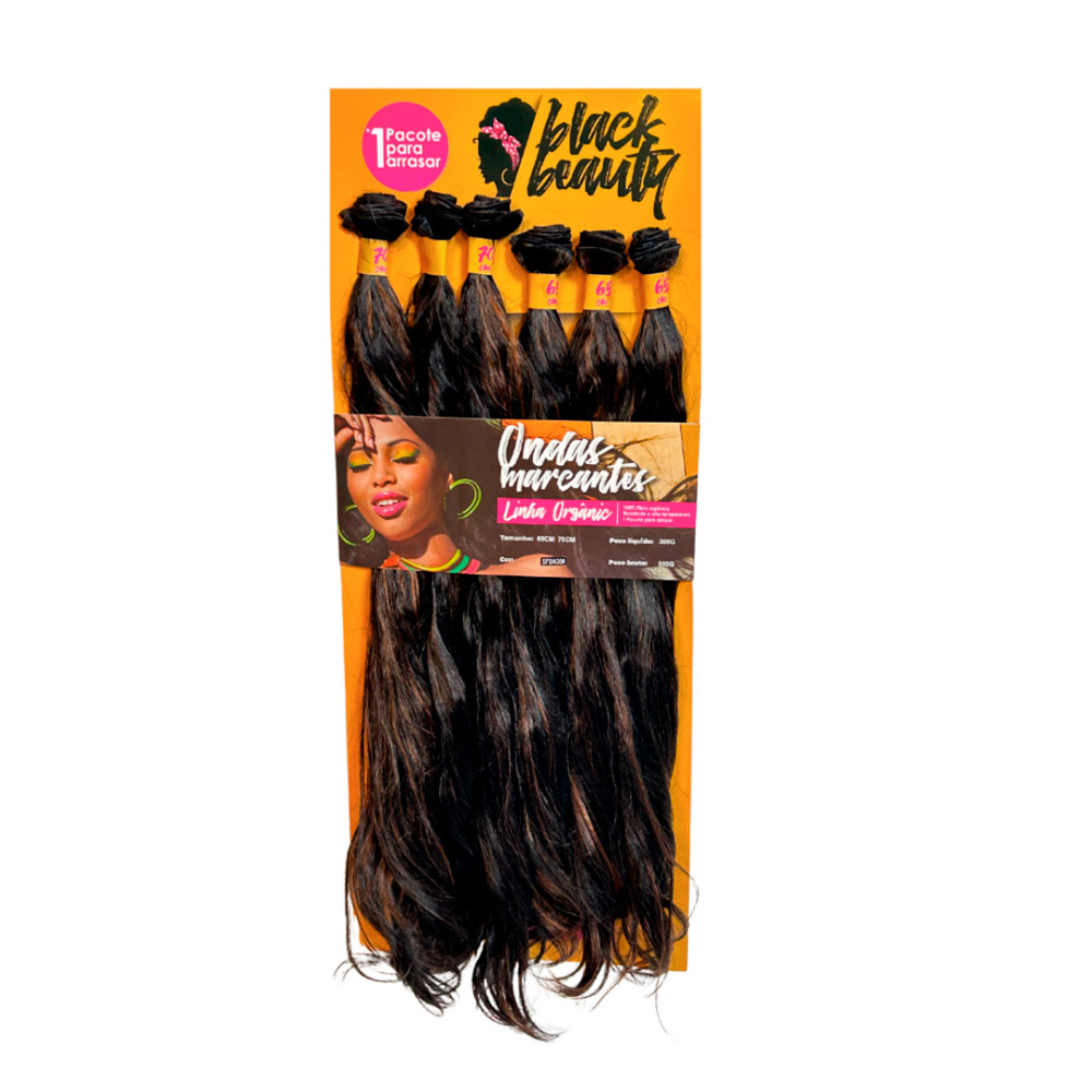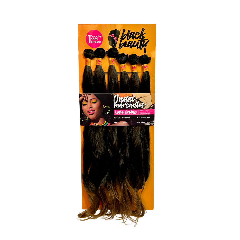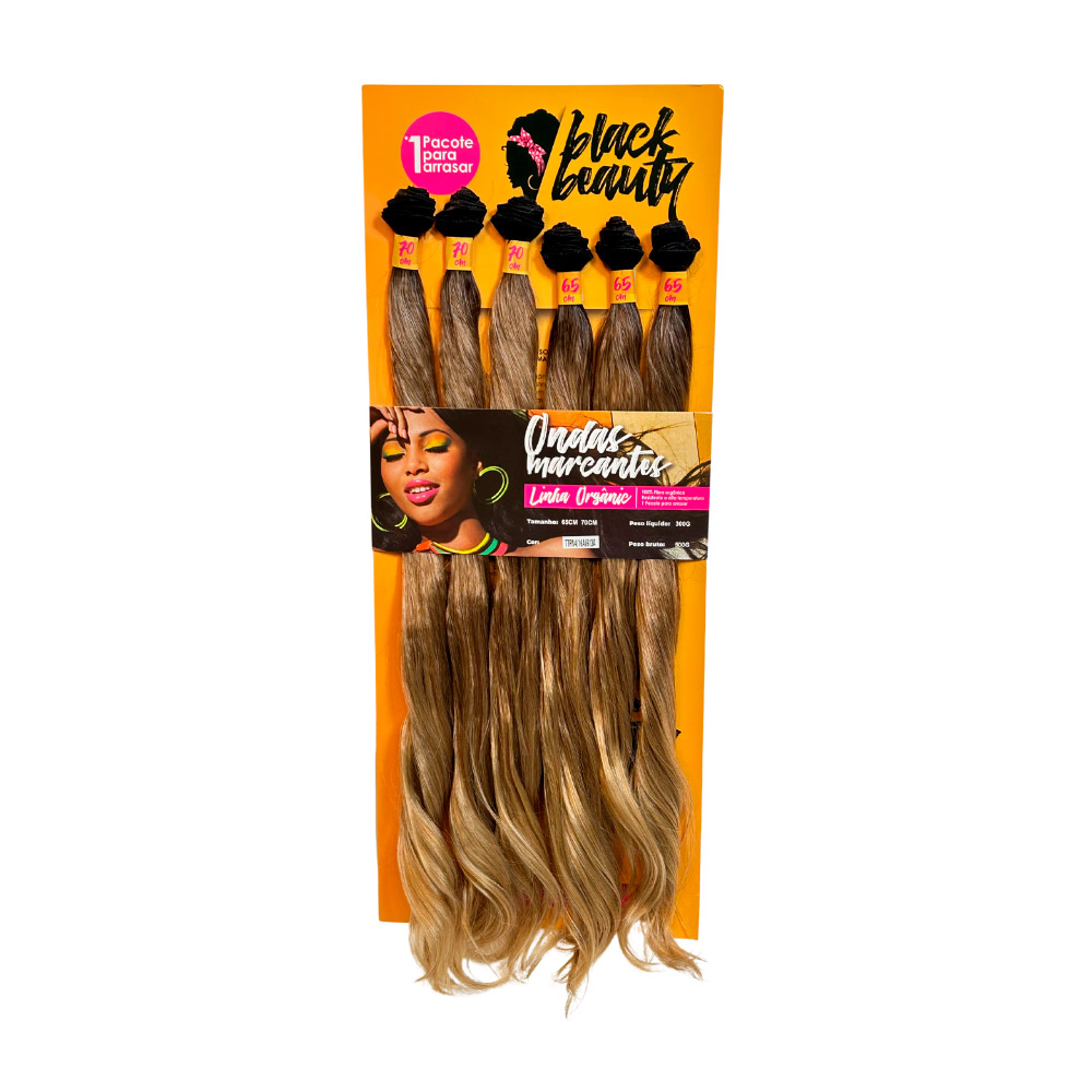 O cabelo orgânico no método Entrelace Ondas Marcantes é longo, com textura ondulada que confere um movimento natural e fluido. Sua fibra Orgânica Premium tem o toque macio e ótima durabilidade. As ondas começam de forma sutil na parte superior e se tornam mais definidas em direção às pontas, criando um efeito volumoso e elegante. O caimento leve e suave dá um aspecto delicado e sofisticado, ideal para quem busca um visual versátil e estiloso.