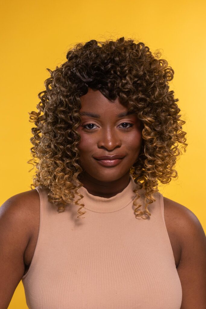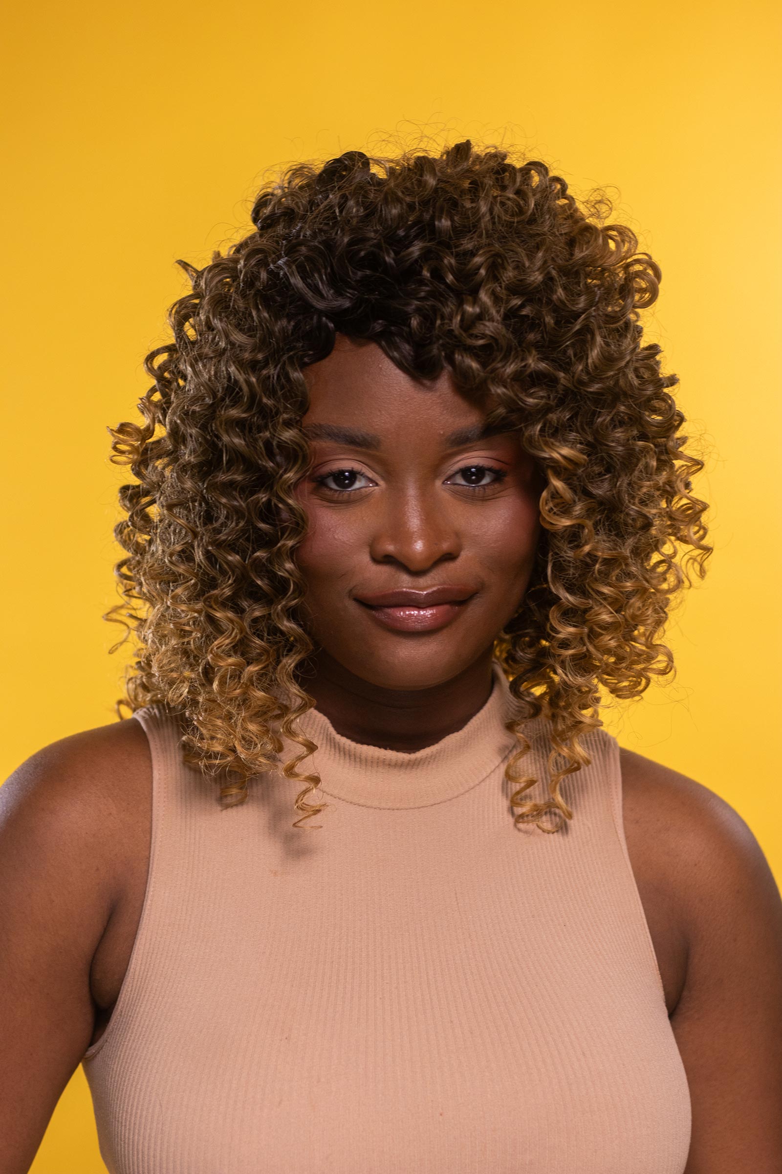 Essa wig apresenta um volume impressionante com cachos bem definidos e textura natural. Sua fibra Orgânica Premium tem o toque macio e ótima durabilidade. O comprimento médio valoriza o rosto, trazendo um efeito moderno e cheio de personalidade. O corte em camadas realça o caimento dos cachos, deixando o cabelo leve e dinâmico. Essa peruca é ideal para quem busca um estilo marcante, autêntico e cheio de atitude.